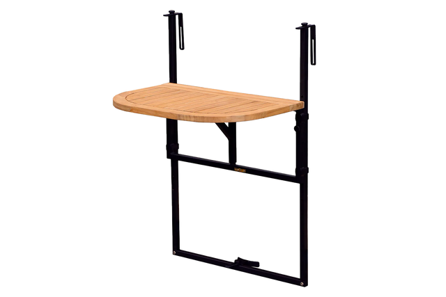 Discover the perfect piece of furniture for smaller balconies – a stylish, wide teak table with rounded corners and beautiful teak slats. The tabletop is made from genuine teak, radiating warmth and natural charm, while the lightweight aluminium frame ensures both stability and easy handling. This table offers an ideal dining space and can be folded down when not in use to free up space.