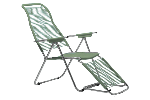 Spaghetti deckchair is a classic retro deck chair with a variety of sitting options. The footstool can be easily and elegantly folded under the chair, so it almost disappears. The elegant deckchair works just as well as a wonderful reading chair in the garden, terrace, balcony or even at the beach. The backrest is lowered by lifting the armrests. The deck chair can be folded up in a snap, so you can take it with you to the beach or the summerhouse. The frame is aluminum.