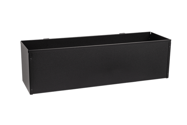 This black balcony flower box is produced in 1 mm strong iron, which is galvanized. Where after the balcony box is powder coated black. The suspension bracket is extra strong and durable, which makes the Liva balcony flower box suitable for mounting on the outside of your balcony. There are very small holes in each corner of the balcony box so that excess water can run off. Please note that the balcony box weighs a little extra, due to the nature of the material. We recommend our customers to use a plastic plant insert, which can be placed into the flower box in order to protect the flower box the best possible way. Furthermore this is also practical when planting so you do not need to lift your heavy balcony box but can leave it on the railing. The flower box can be mounted on the outside of the balcony. Please make sure it is mounted securely with a screw through the pre-drilled holes.