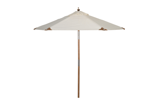 A stable balcony parasol with a two-piece solid wooden teak coloured pole. The beautiful leather details ensure that there is reinforcement at the end of each parasol arm. A classic designed parasol that can be tilted if you wish.
