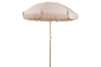 The beautiful Stine parasol in solid color: nature with a tilt funtion and beautiful fringes. Perfect for creating shade from the sun on your balcony, a trip to the beach or in your garden. Stine comes with a bag so you can easily take it with you and transport it to wherever you want to go. Parasol pole made of in oiled beech wood. 5 mm Fiberglass bars that hold the fabric, makes it extra strong and resistant to wind.
