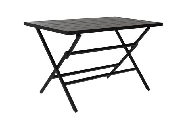 Maintenance-free black aluminum table. Super easy to fold when not in use and takes up minimal space. Perfect on the balcony in the harsh Scandinavian climate with changing temperatures. See the entire Wilkie serie here.
